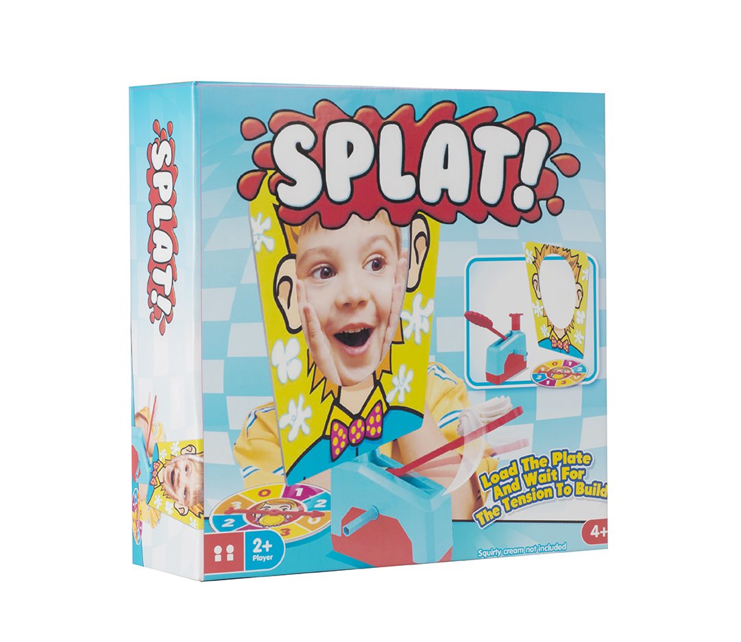 Squirt cream or wet the sponge on the pie splatting hand, rest your chin on the ledge, and take turns twisting the spinner. Relax, keep your cool and prepare yourselves, as one of you will get a big surprise of cream in your face! The question is.. who will it be?
